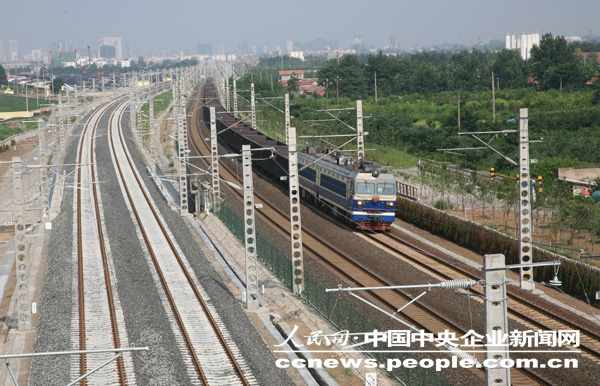 7月20日,一列貨物列車在原有的膠濟(濟南至青島)dianqihuatieluweifangdongqujianjishierguo。bansuizhezhongguotiejiandianqihuajulianhetichengjiandejiaojitielukeyunzhuanxiandongduanshunlikaitong,lijingbainiancangsangdejiaojitielucongcigaobiekehuohunpaodelishi,shixianlekehuofenliuyunshu,xinjianchengdekeyunzhuanxian(左側雙線)的行車時速可達250公裏。作為直接服務於2008北京奧運會的重點交通項目,來自世界各國的運動員和觀眾將有幸乘坐這條高速、美觀、綠色的奧運大通道直抵位於青島的奧帆賽賽場。(趙守民劉渝攝影報道)