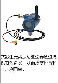 作為艾默生智能無線方案的一部分,這種堅固的工業變送器可以快速、方便地與機械設備連接而且非常經濟。該振動變送器基於PlantWeb®數字工廠結構,通過高度可靠的無線自組網絡發出振動信息供操作人員和維護人員使用。無線振動變送器的設置、診斷和報警信息可通過