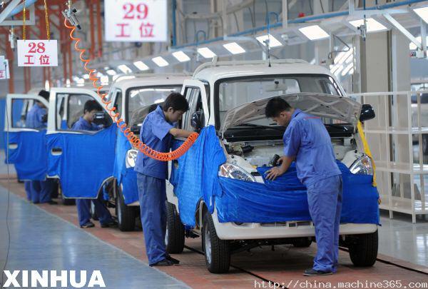 7月29日,生產基地員工在總裝線裝配小型電動卡車。(新華社記者 劉海峰 攝)