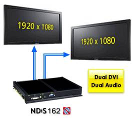 基於AMD® M690E 芯片組內置 ATI X700核心圖形卡的NDiS 162 擁有突出的圖形和高清晰度 (可達 1920 x 1080i) 多屏顯示性能,並支持“雙DVI和雙聲道“。由於其超薄尺寸, NDiS 162 可以很容易的安裝在大型LCD屏後麵。伴隨革命性的無風扇設計,NDiS 162 是高可靠和完美的24/7 係統運轉之最佳選擇。