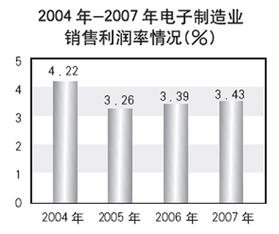 二是人民幣升值壓力加大,加工貿易企業占電子信息產業的70%以上,人民幣每升值0.1個點,就導致加工貿易企業運營成本增加0.5-0.8個點。今年以來人民幣升值0.5個點,帶來全行業加工貿易企業收入減少1.7%,1-6月全行業共減少收入260億元。