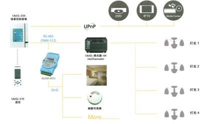 如上圖所示為UbiQ230T 燈光情境控製模塊的係統架構圖。“UbiQ Scenario Master”UbiQ 230T燈光情境控製模塊產品特色包括: