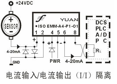 例1: 輸入:4-20mA; 輸出:4-20mA; 輔助電源:24V。