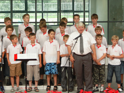丹佛斯天津武清工廠總經理張其中先生代表全體員工向他們表示最誠摯的感謝,並將10套精美的傳統剪紙圖冊作為禮物送給這些遠道而來的小歌手,並預祝他們此次中國巡演能夠圓滿成功。