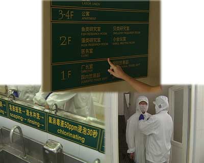 圖片02:東方海洋水產品加工廠辦公室裏麵占用房間最多的是像魚類研究室、藻類研究室、貝類研究室這樣的研究室,研發能力比較強正是這個企業的核心競爭力之一,另外,每一個食品加工工人進入工廠前要完成清洗、消xiao毒du,每mei一yi個ge步bu驟zhou都dou嚴yan格ge按an照zhao流liu程cheng進jin行xing,並bing有you專zhuan人ren負fu責ze監jian督du,正zheng是shi這zhe些xie精jing細xi的de環huan節jie,保bao證zheng了le他ta們men的de產chan品pin能neng通tong過guo各ge項xiang認ren證zheng直zhi接jie進jin入ru國guo外wai的de超chao市shi銷xiao售shou。