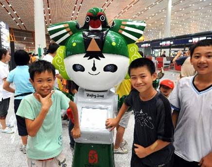 福娃機器人可以通過胸前的觸摸屏提供機場及奧運會信息谘詢,為旅客提供候機樓內的指路引導服務。
