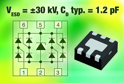 Vishay的該新型器件在 5V 工作電壓時具有 1.2pF 的低電容以及不足 0.1µA 的較低最大漏電流。該陣列可提供 7V 的典型擊穿電壓(在 1mA 時),在 13A 時可提供 22V 的最大嵌位電壓。