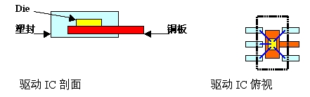 4. 驅動芯片的封裝應有利於驅動芯片管芯的快速散熱,如將管芯(Die)直接綁定在銅板上,並有一Pin直接延伸到封裝外,便於直接焊接在PCB板的銅箔上迅速導熱(圖1)。如在一個類似4X4mm的矽片管芯上,要長時間通過300-1000mA的電流,必然有功耗,必然會發熱,芯片本身的物理散熱結構也是至關重要的。