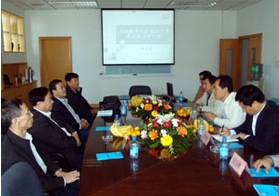 許繼電氣副總工程師廖澤友博士向遼寧省電力公司領導彙報了許繼數字化變電站的開發和應用情況。他重點圍繞變電站的通信標準、組站方案和工程應用的技術特點和典型工程效果等方麵作了彙報。