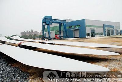 這台“巨無霸風車”是由北海銀河艾萬迪斯風力發電有限公司研製的。10月14日,記者在采訪中見到,在該公司場院中,三片巨型葉片——即將要組裝的風力發電機的葉片已經製作完成。它們是構成這個國內風力發電機“巨無霸”的主要部件,每張葉片長40米、重10噸。其他零部件也已完成,並開始組裝。