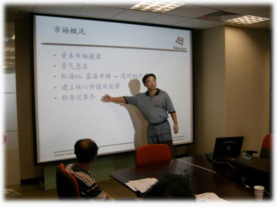 首先出場的是赫立訊公司亞太區營銷總監Michael li先生,在以“台灣最近最火爆的電影?”——-《海角七號》作為開場的趣味有獎問答的互動後,Micheal和he大da家jia分fen享xiang了le廣guang為wei關guan注zhu的de無wu線xian通tong訊xun業ye市shi場chang願yuan景jing,也ye誠cheng懇ken希xi望wang和he廣guang大da新xin老lao客ke戶hu在zai這zhe個ge全quan球qiu景jing氣qi不bu佳jia的de環huan境jing下xia共gong創chuang雙shuang贏ying的de藍lan海hai市shi場chang。雖sui然ran僅jin僅jin25分鍾的簡短分享,可結合市場景氣耳目一新的市場預測和展望獲得在場來賓熱烈的掌聲!!