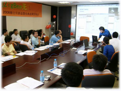 2008年,赫立訊迎來創業的第7個年頭,嶄新機遇與創造藍海的年度。2008年,赫立訊推出了新的豐富的產品線,新的行業應用,為打造“美麗”無線領航zigbee和M2M產業蓄勢待發。本次上海會議安排在上海辦事處大會議室舉行,專場邀請的近50位VIP客戶早早聚集一堂,還有特別從南京、杭州趕來的客戶和代理夥伴,讓Helicomm人很是感動!!