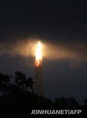 印度空間研究組織22日用一枚極地衛星運載火箭將印度首個月球探測器“月船1號”發射升空。