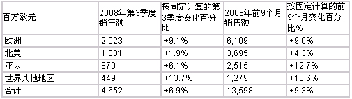 按地區劃分的增長情況 在歐洲,第3季度銷售額相比2007年同期上升9.1%。zaixiou,yingguohexibanyayewufazhanruyuqijiansu,zhuyaoyuanyinshizhuzhaishichangdedimi。deguohefaguozebaochiwendingshitou。youyuzhuzhaihefeizhuzhailouyushichangdejianhuanqushi,beiousikandenaweiyadiqudezengchanglvjiangzhiyiweishu。jituanzaishujuzhongxinlingyushixianleqiangjindezengchang,zheyifangmiandeyiyugaishichangbenshendefazhanlidu,lingyifangmianhaiguiyinyugongsizaizhilianghejienengjiejuefanganshangyongyoudexianjinjishu。zaiduoshuguojia,chanpinyewudouyoujiansu,dantamendoudeyiyufuwu、項目和解決方案等方麵需求的良好勢頭,特別是在西班牙和法國。