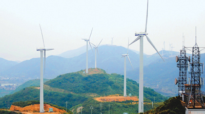編者語:剛剛投入試運行的浙江省規模最大的風電場——岱山縣衢山風力發電場。該風力發電場共有48台風力發電機,每台風機功率為850千瓦。