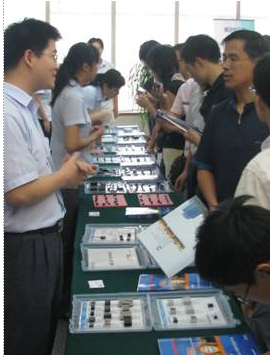 在休息的時候,嘉賓們還來到會場一側的產品展示區進行參觀,很多人對超小型AC/DC、高隔離穩壓等一大批金升陽的新產品表現出極大的興趣,並積極向現場的工作人員詢問產品的具體信息。