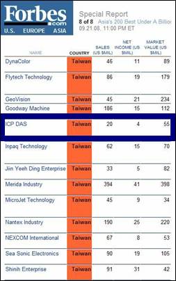 編者語:近日,泓格科技(ICP DAS)日前獲選2008亞太地區200大最佳中小企業,該獎項由「福布斯亞洲」雜誌(Forbes Asia)自營業收入10億美元以下的亞太地區中小型企業。