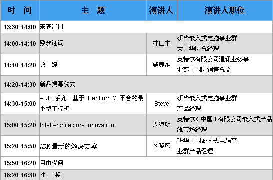 為了推動中國嵌入式工控機市場的發展,為各類廠商提供最佳的嵌入式產品解決方案。研華科技聯合全球著名合作夥伴Intel在上海舉辦“研華嵌入式工控機ARK係列新品發布暨技術研討會”。在此次新品發布會上,研華將會向業界發布全球第一款最新的最小型嵌入式工控機ARK係列產品。