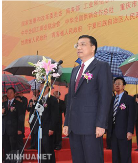 李克強出席第九屆中國西部國際博覽會並在首屆中國西部國際合作論壇上致辭時指出 擴大國內需求 促進開放開發