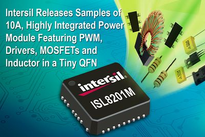 美國加州、MILPITAS — 2008年11月20日 — 全球高性能模擬半導體設計和製造領導廠商Intersil公司(納斯達克全球精選市場交易代碼:ISIL)今天宣布,推出節省空間、降低成本、簡化設計的高集成度功率轉換模塊ISL8201M。