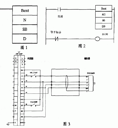 當有多個信號之一發生就需要輸出某個信號時,這些信號之間是邏輯“或”的(de)運(yun)算(suan)關(guan)係(xi)。一(yi)般(ban)將(jiang)這(zhe)些(xie)信(xin)號(hao)對(dui)應(ying)的(de)常(chang)開(kai)觸(chu)點(dian)並(bing)聯(lian)來(lai)寫(xie)程(cheng)序(xu),信(xin)號(hao)點(dian)數(shu)很(hen)多(duo)時(shi),相(xiang)應(ying)程(cheng)序(xu)較(jiao)長(chang)。或(huo)者(zhe)將(jiang)這(zhe)些(xie)信(xin)號(hao)集(ji)中(zhong)在(zai)某(mou)幾(ji)個(ge)字(zi)中(zhong),用(yong)比(bi)較(jiao)指(zhi)令(ling)CMP與0比較,然後檢查是否相等來寫程序,程序也比較長。而用位計數指令Bcnt對標誌位的影響來寫就十分簡單,首先將這些信號集中到連續的幾個字中,假如有25個信號已經集中在80和81兩個字中,這些信號中有任何一個發生,就要使16.00 輸出一個信號,然後用Bcnt指令寫出T形圖程序,見圖 2。