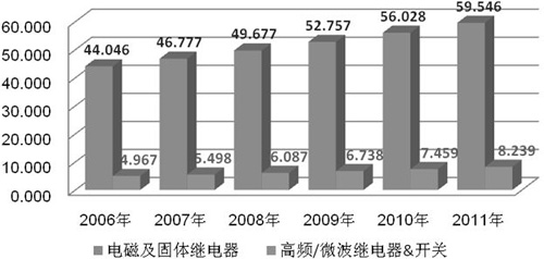 編者語:繼電器是具有隔離功能的開關元件,廣泛應用於通信、汽車、工業控製等領域,可以說是最重要的控製元件之一。隨著通信和汽車對繼電器需求的不斷增長,繼電器供應商紛紛提高固態繼電器(SSR亦即電子繼電器)的產量,以應對日益龐大的市場需求。美國VDC公司的調查報告預計,到2011年,全球電磁及固體繼電器總銷售額將達59.546億美元,年均增幅6.2%。