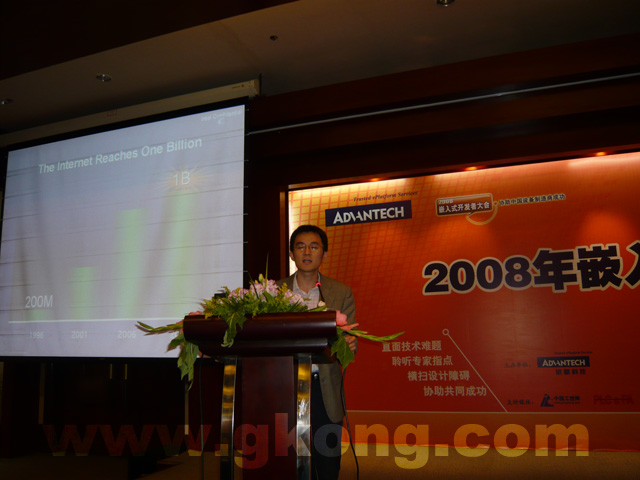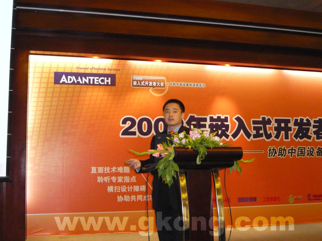 研華中國嵌入式事業群總監業務總監胡智生先生開場演講,向參加大會的來賓對研華07年的銷售業績、產品與服務、產品發到、以及研華在中國布局作了介紹。胡總監表示,研華定位網絡平台(ePlatform)供應商,將一如既往地從“產品”為導向轉向“服務”為導向的經營理念,為服務好客戶,研華將進一步把Advantech打造成一個值得客戶信賴的品牌,Trusted ePlatform Services是研華不斷追求的。
