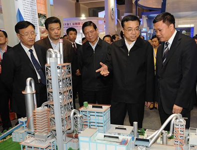 下午3時許,李克強與中共中央政治局委員、北京市委書記劉淇一同來到展覽現場,仔細觀看一件件實物、一個個模型、一幅幅圖片,認真聽取工作人員介紹。在中央主造型區、政(zheng)府(fu)節(jie)能(neng)展(zhan)區(qu),李(li)克(ke)強(qiang)詳(xiang)細(xi)了(le)解(jie)有(you)關(guan)情(qing)況(kuang),對(dui)近(jin)年(nian)來(lai)全(quan)國(guo)及(ji)北(bei)京(jing)市(shi)節(jie)能(neng)環(huan)保(bao)工(gong)作(zuo)的(de)成(cheng)效(xiao)表(biao)示(shi)充(chong)分(fen)肯(ken)定(ding)。他(ta)指(zhi)出(chu),節(jie)能(neng)減(jian)排(pai)是(shi)推(tui)動(dong)科(ke)學(xue)發(fa)展(zhan)的(de)重(zhong)要(yao)任(ren)務(wu),也(ye)是(shi)促(cu)進(jin)產(chan)業(ye)升(sheng)級(ji)的(de)重(zhong)要(yao)途(tu)徑(jing)。要(yao)加(jia)大(da)結(jie)構(gou)調(tiao)整(zheng)力(li)度(du),推(tui)進(jin)企(qi)業(ye)改(gai)造(zao)重(zhong)組(zu),提(ti)升(sheng)能(neng)源(yuan)使(shi)用(yong)效(xiao)率(lv)和(he)產(chan)業(ye)發(fa)展(zhan)水(shui)平(ping),提(ti)高(gao)經(jing)濟(ji)增(zeng)長(chang)質(zhi)量(liang)和(he)效(xiao)益(yi)。在(zai)觀(guan)看(kan)十(shi)大(da)重(zhong)點(dian)工(gong)程(cheng)、水泥廠餘熱餘壓利用、汙泥焚燒、qiyeyongdianyongrezaixianjiancepingtaidengxiangmuhejishuzhanshishi,likeqiangshuo,yaojinyibuzengjiajienenghuanbaotouru,jiakuaiqiyejishugaizao,tuixingjienengchanpinhefuwu,peiyuxindejingjizengchangdian。