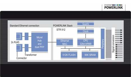 這種微控製器單元結合了一個32位ARM9 CPU, 一個96 KB SRAM,一個容量在512 KB 和2.1 MB之間的閃存、一個以太網控製器和一個實時時鍾。此方案可確保響應時間低於5µs。Port公司的堆棧和ST公司的硬件使用戶隻需添加很少的元器件即可實現一個POWERLINK連接,這樣總成本會低於基於ASIC解決方案的成本。如果MCU帶一個更大的閃存,用戶也能實施多協議設計,這樣就能連接到所有基於軟件的協議例如Ethernet/IP、Modbus TCP 或Profinet IO 和 RT。要適應CANopen 和 DeviceNet網絡解決方案,用戶隻需連接一個CANopen收發器即可實現。Port公司還為製造商提供產品研發支持,如:一種能夠快速編譯對象字典和輸出EDS文件的設計工具、一種包括研發協議和應用實例需要的所有組件的開發套具和測量精確時間的分析器。另外,此方案伴隨一係列的幫助工具:比如JTAG-capable硬件,以確保有效的調試。而且,製造商可以使用免費的GCC編譯器(GNU complier collection)。
