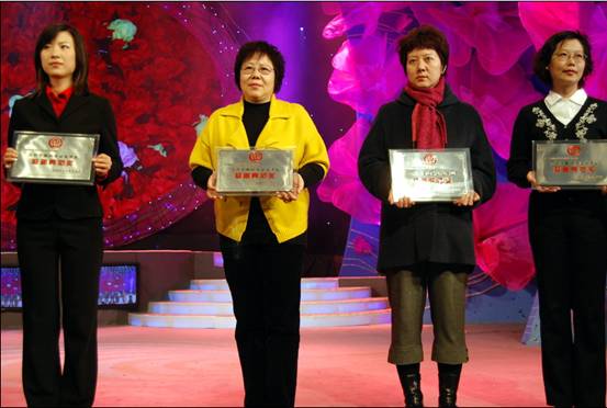 12月11日,在全國婦聯舉辦的“中國婦女發展基金會” 成立20周年慶典晚會上,研祥智能科技股份有限公司因積極參與社會公益事業,並向“母親水窖”工程捐助善款,被中國婦女發展基金會(以下簡稱婦基會)授予“慈善典範獎”。研祥集團副總裁陳英女士上台接受了表彰和獎牌。