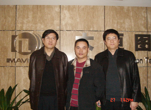 三姆森總經理張慶祥與大恒圖像總經理何建國、總工程師潘津合影