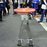 餐桌式機器人由日本Laksmi-Do公司的科研人員研製,它有兩個輪子,從外表看酷似一個小桌子。它“行走”平穩,而且在“行走”過程中能自動避開人和障礙物。科研人員表示,餐桌機器人可以勝任餐廳服務員的工作,它身上安裝有機載計算機控製係統、傳感器、陀螺儀以及人工智能技術,這些先進的技術和裝置將使這名“機器服務生”出色地為餐廳的顧客服務。