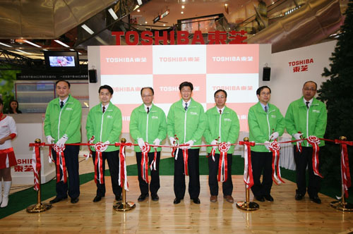 12月19日,凝聚東芝節能環保成就和科技領先成果的“東芝環保展廳”在上海龍之夢廣場盛裝開幕。東芝中國總代表田中孝明親臨現場為展廳開幕剪彩並致辭。