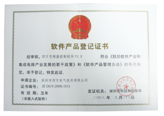 深DGY-2008-1013 深圳市四方電氣技術有限公司 四方變頻器控製軟件V4.5