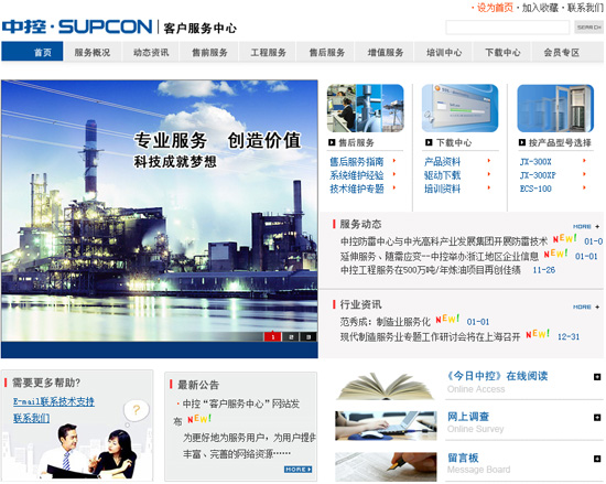 中控“客戶服務中心”欄目以“主動服務用戶”為中心,“滿足用戶需求”為宗旨,以新穎獨特的界麵設計風格、豐富充實的網站內容、完善強大的網站功能為用戶搭建便捷、高效的信息獲取、在線支持和學習的網絡平台。
