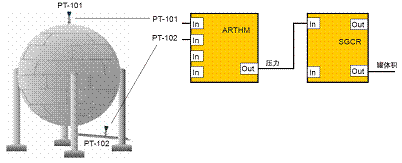 運用算術功能塊完成罐底和罐頂的差壓計算,再通過線性化功能塊以20點的采樣值來擬合出相應的差壓和體積的線性關係,並可以在罐底3051S的表頭上直接顯示罐的體積。