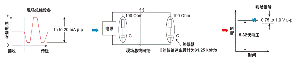 傳送設備以31.25kbit/s的速率向50Ohm的終端負載發送±10mA,產生1.0V的峰一峰電壓,並調製於直流(DC)電壓之上,直流電壓範圍為 9-32VDC(見圖 7) 。但是,在本安應用中,電壓範圍視選用方案而定。