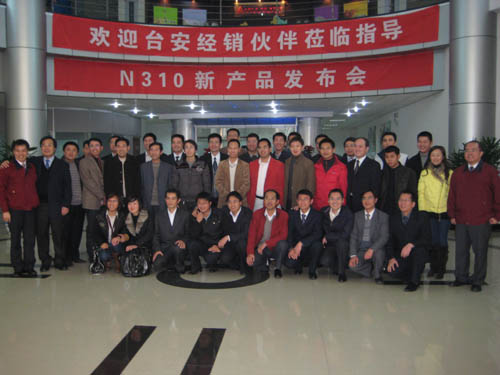 早上9點(dian),總(zong)經(jing)理(li)林(lin)德(de)緯(wei)親(qin)自(zi)主(zhu)持(chi)新(xin)品(pin)發(fa)布(bu)會(hui)並(bing)做(zuo)了(le)重(zhong)要(yao)講(jiang)話(hua)。林(lin)總(zong)首(shou)先(xian)歡(huan)迎(ying)各(ge)大(da)經(jing)銷(xiao)商(shang)老(lao)總(zong)的(de)現(xian)場(chang)親(qin)臨(lin)感(gan)謝(xie)各(ge)大(da)廠(chang)商(shang)對(dui)台(tai)安(an)長(chang)期(qi)以(yi)來(lai)的(de)支(zhi)持(chi)和(he)厚(hou)愛(ai),並(bing)對(dui)廣(guang)大(da)廠(chang)商(shang)關(guan)心(xin)的(de)台(tai)安(an)的(de)未(wei)來(lai)發(fa)展(zhan)和(he)新(xin)產(chan)品(pin)的(de)產(chan)品(pin)策(ce)略(lve)做(zuo)了(le)詳(xiang)細(xi)的(de)闡(chan)述(shu)。N310係列變頻器秉承了台安一貫的優良品質,設計突出了高性能,人性化,耐環境運轉的產品特色。作為N310係列變頻器主要設計師之一的電子設計課石東哲經理為大家詳細介紹了新產品的功能特色,並將N310係列與台安以往產品和其他品牌產品進行了差異性對比。N310係列是針對中國市場設計的高性價比泛用性產品,與目前市場上流行的同類產品相比,N310係列變頻器最大的優點在於:具有友好的人機界麵、完善的保護功能、靈活的輸入輸出接口、特有的死區補償算法、完善的通訊接口及通訊格式。相信該係列產品將以其優越的性價比從同行業中脫穎而出,贏得廣大用戶的讚同與認可。