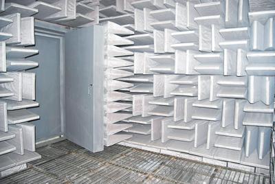 陝西計量院建立的聲學實驗室擁有世界著名的丹麥B&K公司生產的PULSE3560係統。新建的電聲檢定裝置和聽力檢定裝置,能夠測量(20~160)dB,在頻率(4Hz~20kHz)範圍內頻率分辨率為1mHz,達到國內先進水平,為西北地區的航天、航空、軍工製造、民用生產和科研院所提供了準確的科學數據。圖為聲學實驗室的全消聲室。
