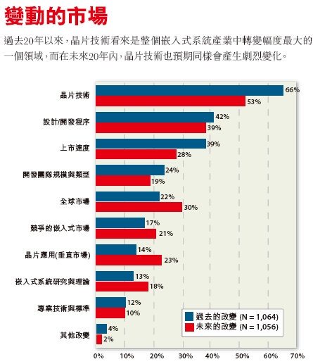 即(ji)使(shi)在(zai)半(ban)導(dao)體(ti)設(she)計(ji)領(ling)域(yu),我(wo)們(men)已(yi)經(jing)看(kan)到(dao)了(le)許(xu)許(xu)多(duo)多(duo)的(de)重(zhong)大(da)技(ji)術(shu)突(tu)破(po),但(dan)超(chao)過(guo)一(yi)半(ban)的(de)開(kai)發(fa)人(ren)員(yuan)仍(reng)然(ran)持(chi)續(xu)尋(xun)求(qiu)著(zhe)更(geng)重(zhong)大(da)的(de)芯(xin)片(pian)技(ji)術(shu)變(bian)革(ge)。一(yi)點(dian)也(ye)不(bu)需(xu)要(yao)驚(jing)訝(ya)!因為,在未來20年內,憑借著這些不斷推進改革的力量,我們將看到全球嵌入式市場出現較過去20年更加顯著的改變。