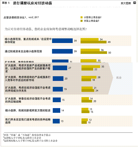 與之類似,當被問到為了應對經濟動蕩,將如何調整所考慮的各種戰略選擇時,高管們表示,他們正在縮小選擇範圍,將保留現金和削減資本支出作為唯一關注重點(圖表5)。