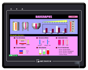 在CPU采用和內存上,威綸i係列采用400MHz CPU、超大128MB 內存,與目前市場上流行的采用200MHz CPU的同類產品相比,反應速度、通訊速度、下載速度大幅度提高。128MB 超大內存,使用者程序最大可用16MB,使用者數據儲存空間 50MB 。