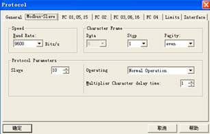 首先安裝STEP 7 V5.3+SP2版編程軟件和CP341模板所帶的軟件驅動程序。在硬件配置中定義CP341通訊卡,如圖5所示。在標記CP 341 選擇"Edit > Object Properties",或者雙擊CP 341,顯示圖6.0,不必在"General","Addresses"和"Basic Parameters"標簽中做任何設置。點擊" Parameters"按鈕來參數化波特率9600,偶校驗等參數,這裏非常重要的一點就是PLC作為MODBUS通訊的從站地址"10"的定義,如圖6.1所示。然後再設定MODBUS從站的Function Code地址與PLC中M,I,Q等地址的對應關係。圖6.2是定義MODBUS通訊RS485協議的定義,圖6.3是定義調用的DB60和DB61數據塊。
