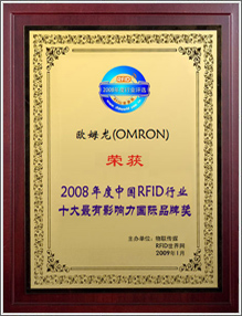 歐姆龍榮獲“2008中國RFID行業十大最有影響力國際品牌”稱號