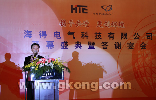 2007年12月18日海得電氣科技有限公司開幕慶典在上海市西郊賓館百花廳隆重舉行,上海市外經委、上海市發展和改革委員會、上海證監局、上海市中小企業協調辦公室等相關領導,施耐德、OMRON、ABB、HIRSCHMANN等商業合作夥伴,以及客戶代表共計200多位嘉賓應邀參加了開幕慶典。海得電氣科技有限公司董事長許泓、索能達集團亞太區總裁Mr.Marius在現場嘉賓的熱切注目下共同揭開覆蓋匾額的紅色絲絨帷幕,象征國際國內強強聯合的中國自動化行業新星--“海得電氣科技有限公司”在祝酒歌中正式誕生!