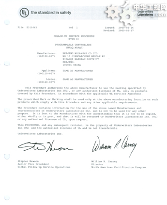 隨著和利時公司PLC產品的不斷技術創新與發展,於2006年11月份推出的LK係列大型PLC產品(英文名稱LK UCS),於近日通過了UL認證。