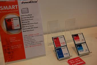 二、(IDE Flash Module)展出EDC/iCF 8000係列,其傳輸接口可支持UltraDMA 6,最高讀取及寫入最高每秒可達80MB及75MB。