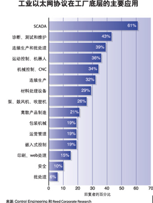 根據回複的統計來看,監控和數據采集係統(SCADA)顯然是以太網現場應用中