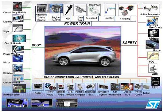 對於國內自主品牌汽車電子廠商來說,目前比較適合進行以下技術產品的開發:1.動力控製領域,節氣門/直噴引擎,智能渦輪增壓,電子閥門驅動,自動變速箱係統,混合動力係統等。2.在能量效率和管理方麵,刹車能量轉化、熱能轉化、電動燃油泵、LED燈等。3.底盤電子控製:電子轉向助力係統 (EPS)、胎壓監測係統(TPMS)等。4..車身控製:電動後視鏡控製、電動座椅記憶調節係統、雨刮控製、電動門窗控製、自動空調、數字式儀盤等。 5.信息娛樂係統:GPS導航儀等。6.網絡總線控製:CAN/LIN通信協議、控製器、收發器等。7.混合動力、電動汽車:驅動馬達控製、動力電池管理係統(BPMS)、多能源管理係統、DC/DC模塊等。