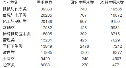 根據統計資料預計,28.42萬人中,需求研究生2.29萬人,本科生15.18萬人;需求文科類畢業生5.33萬人,理科類畢業生6.69萬人,工科類畢業生13.59萬人;機關、事業單位需求3.18萬人,國有企業需求4萬人,非公經濟組織需求21.24萬人。